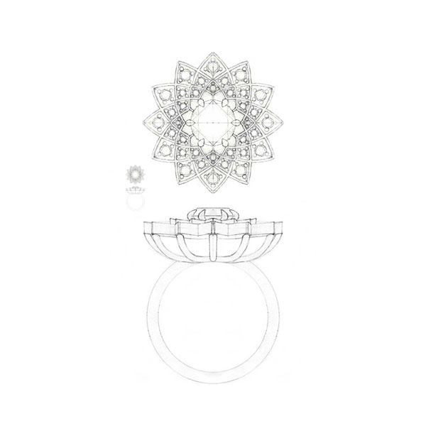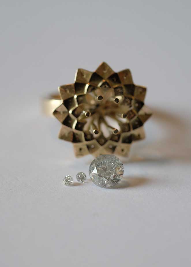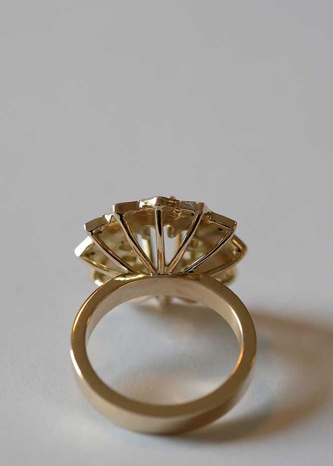 We love how this is so bold and intricate. The client came to us with a visual feast of references from graphic folded shapes, to oversized vintage cluster rings.