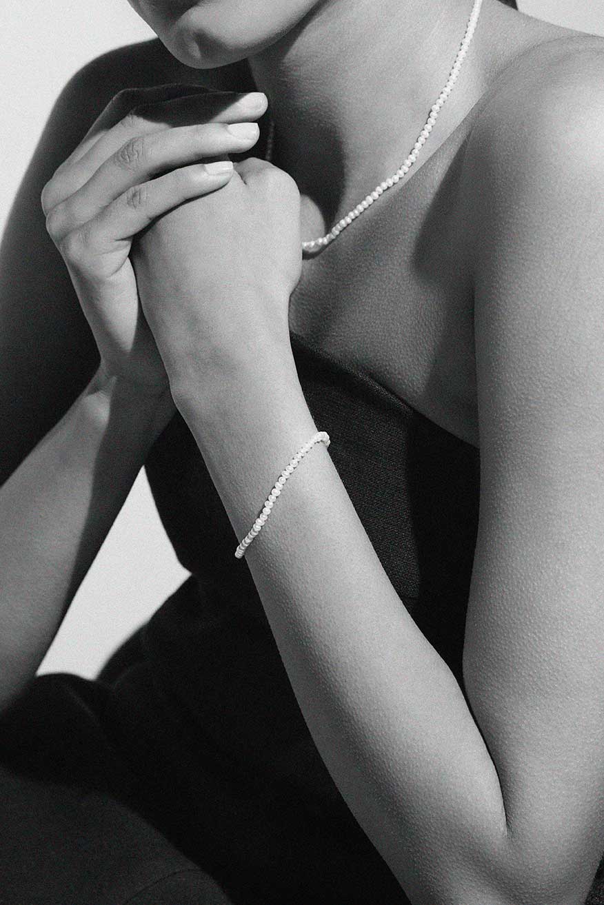 An ultra deluxe take on beachy strings of tiny beads, the Micropearl set - featuring bracelet, anklet and necklace - are strung with tiny, radiant seed pearls for the ultimate in understated, laidback luxury.