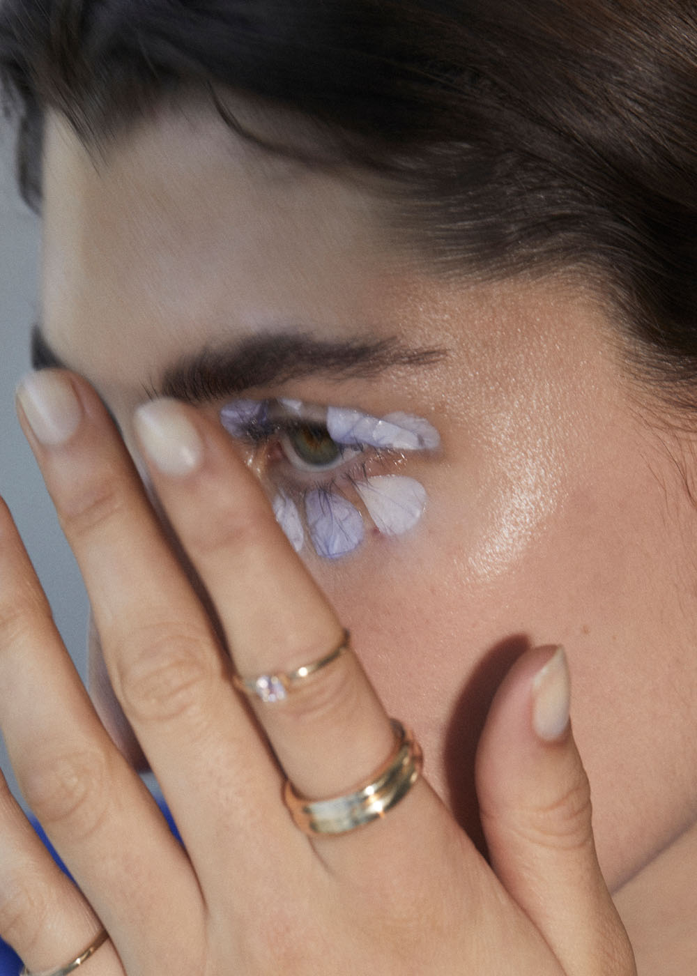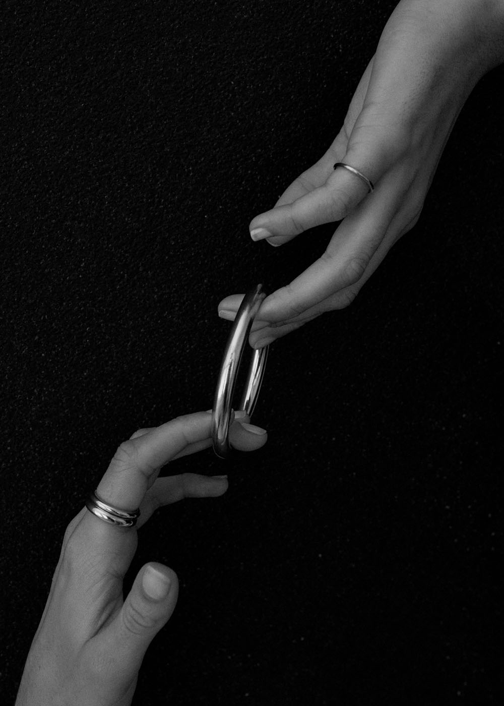 Our jewelled pieces are perfectly balanced by a considered edit of simple, fluid forms that nod to classic styles from the Meadowlark archives, reimagined in the Deux Halo Earrings, Halo Bangle & the reintroduction of the Ear Cuff.