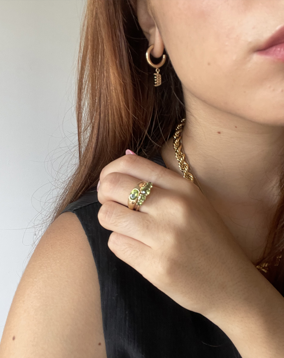 My Claude Ring with Stone and Signature 5 Stone Ring stacked together. Always catches people's eyes.
