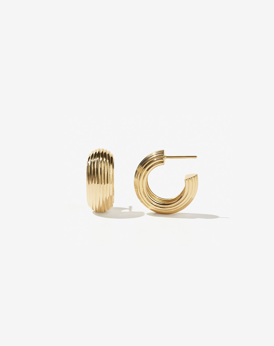Eva: We agreed on a matching piece, the Melrose Charm Necklace with an engraving. Also the Hera Hoops for Kirana because hoops are a staple for her.