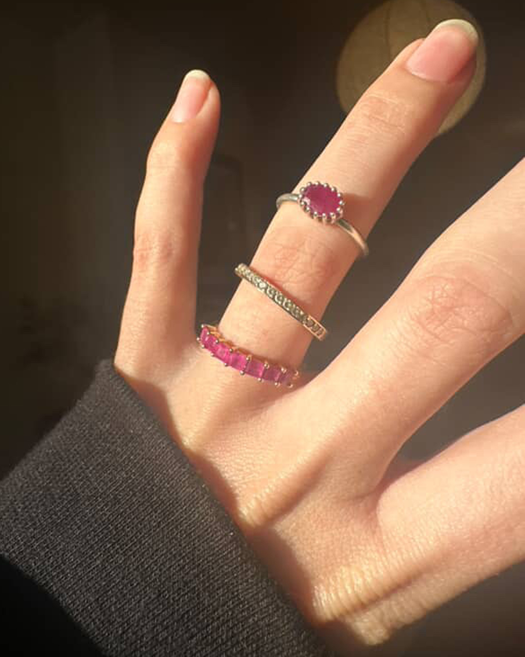 I wanted something timeless, and something that suited my everyday style. I had a few ideas and references in mind, but working with Meadowlark really brought everything together. They helped figure out the best way to work with the original stones and create a set that felt cohesive, while still allowing each piece to stand on its own.