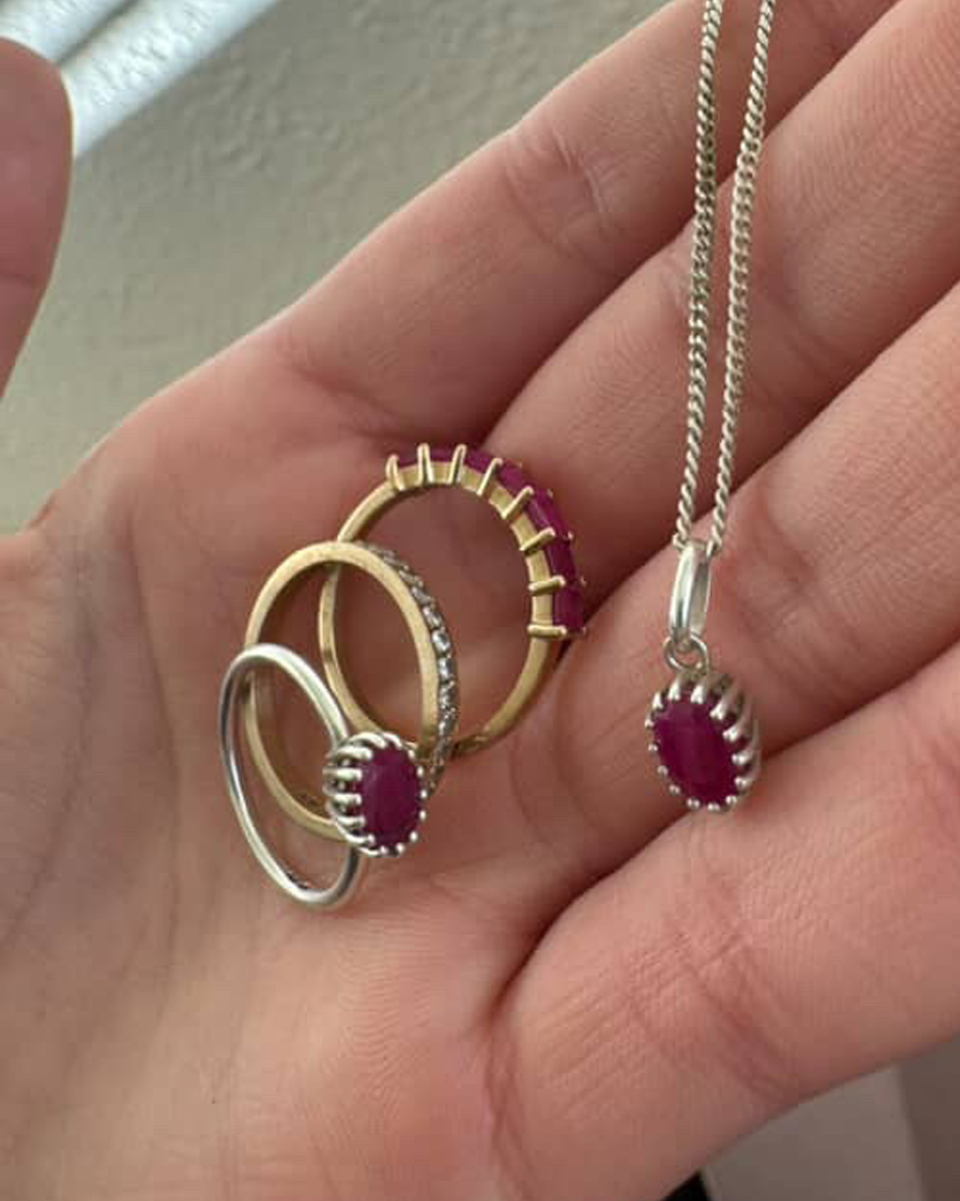 When my mum passed away, these particular pieces of jewellery were passed down to me. For five years they stayed in my jewellery box. I loved them, but they felt too precious to wear. Remodelling them into something I could wear every day felt like the right way to honour her and keep her close.