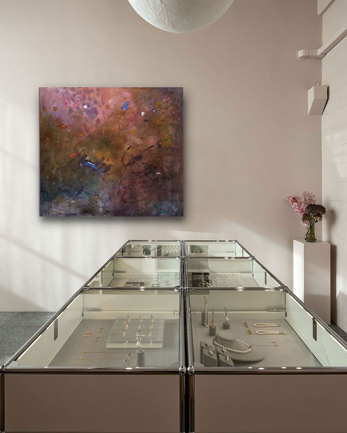 Emma Mcintyre is a New Zealand born, Los Angeles based artist who makes abstract paintings. What we loved about the piece ‘Brown’ that we have in the store is how she used her body to paint the canvas, similar to the performance art of Yves Klein which inspired some of our Paradis collection. If you look up close at the artwork you can see the criss-cross of her fishnet tights, making patterns that look almost like netting across the canvas.