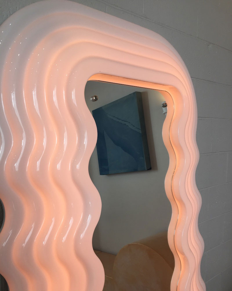 Ultrafragola means strawberry and with it’s waves and curves, suggests long wavy hair. It was designed in 1970 as part of the Mobili Grigi series of complete bedroom and living room furnishings and after years of searching, we sourced and imported this mirror from Italy. We are so happy to now house it in our store.
